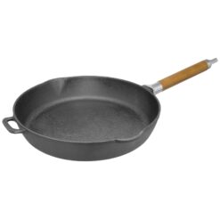 Gusspfanne 24cm Gußeisenpfanne mit abnehmbarem Holzgriff Pfanne aus Gusseisen mit Ausgießer
