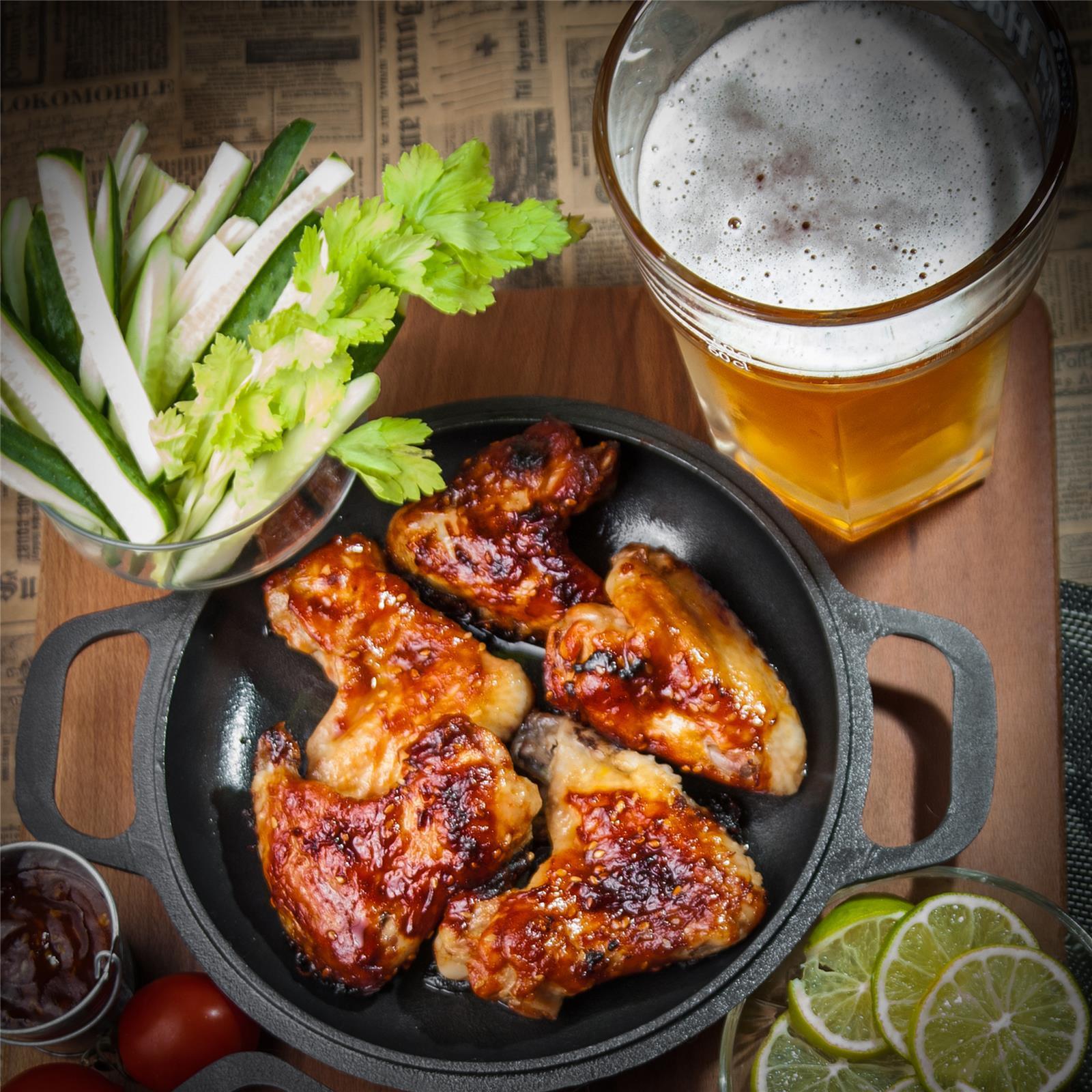 Gusseisen gehört zu den beliebtesten Pfannenmaterialien. Das liegt vor allem an seiner sehr guten Wärmespeicherung, -verteilung und –speicherung. Hier bleibt die Wärme wesentlich länger im Material als bei anderen Pfannenarten. Damit ist Gusseisen geradezu gemacht für Servierpfannen. Speisen bleiben darin einfach länger warm, sodass man sich beim Essen ruhig ein wenig mehr Zeit nehmen kann.