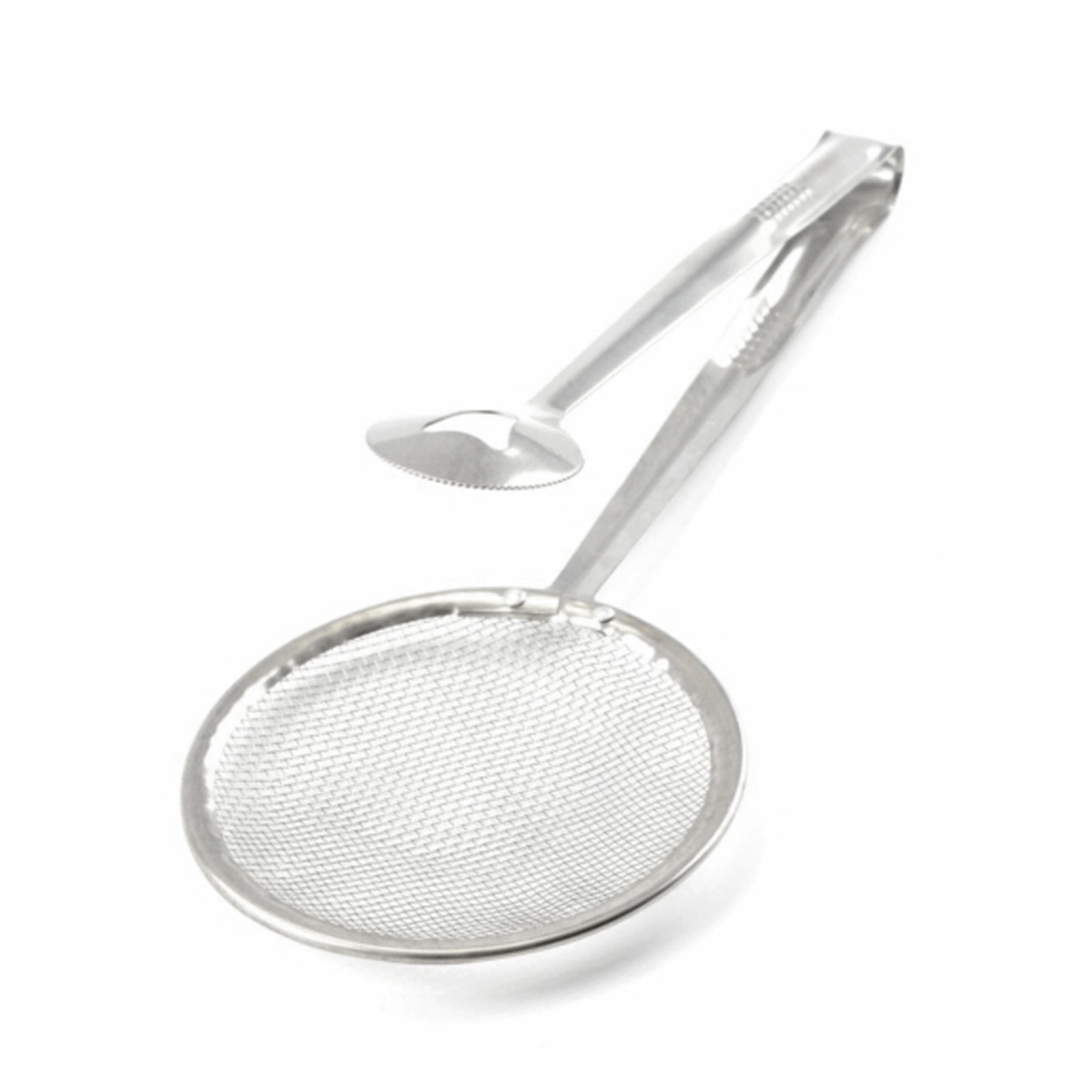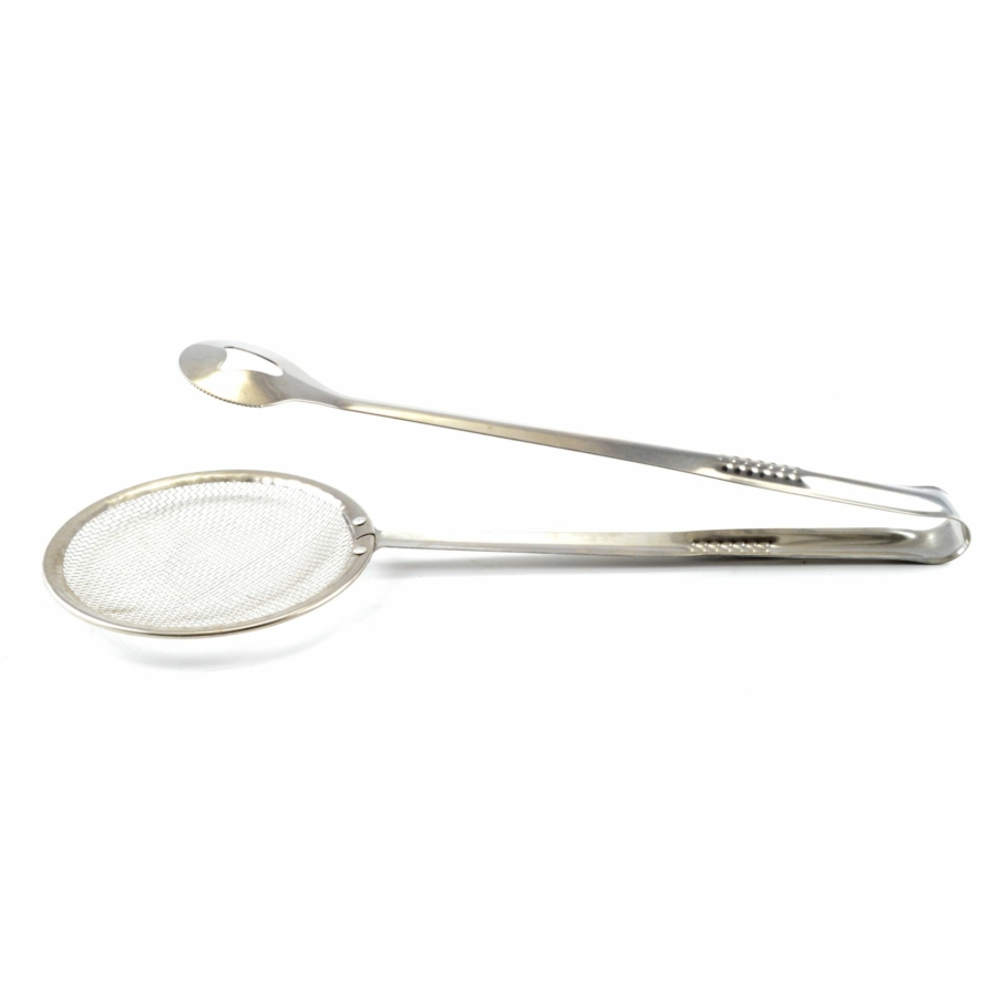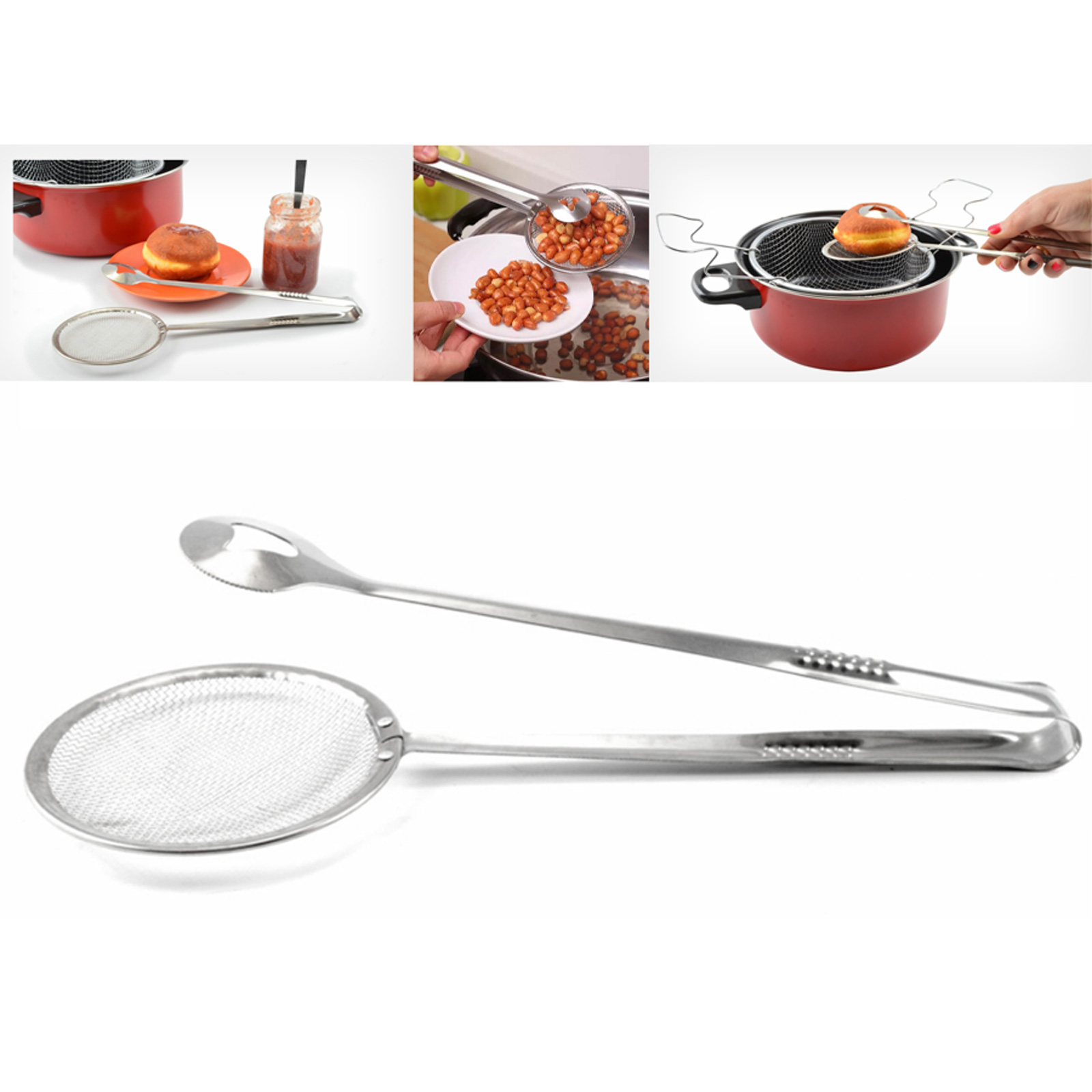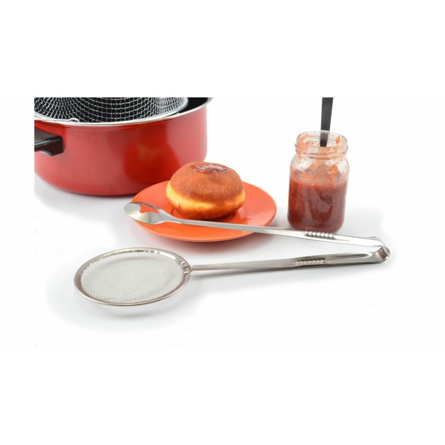 Praktische Allrounder mit Multifunktion: Fritierkelle, Siebkelle, Abtropfkelle und Abtropfzange in einem.