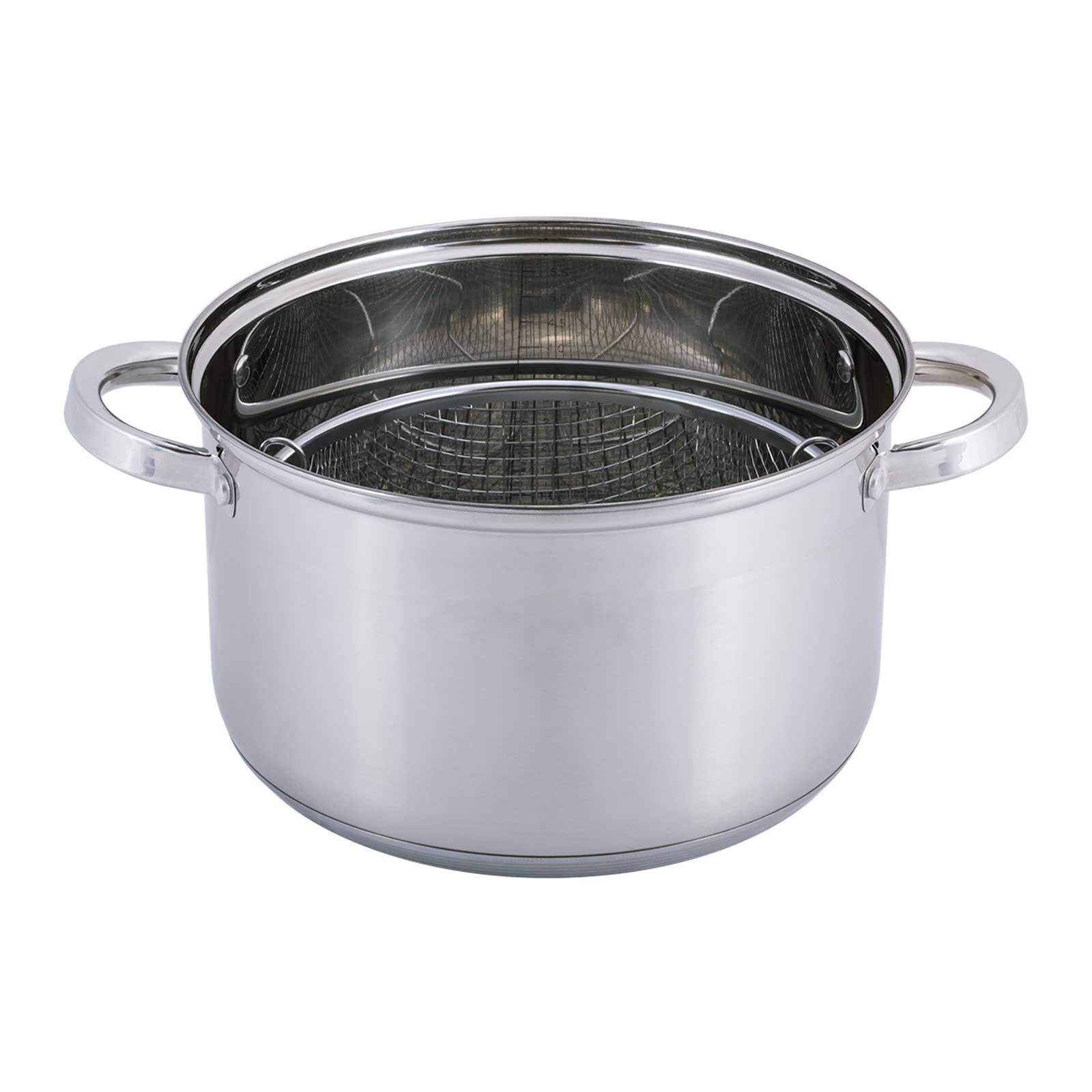 Der sensationelle multifunktionale Frittiertopf ist ein unersetzter Helfer in Ihrer Küche. Die Friteuse ist ideal zum Braten von Pommes Frites, Dämpfen und Blanchieren von Gemüse. Besonders gut geeignet für das Diätmenü, wenn die Gerichte nicht gesalzen werden können.