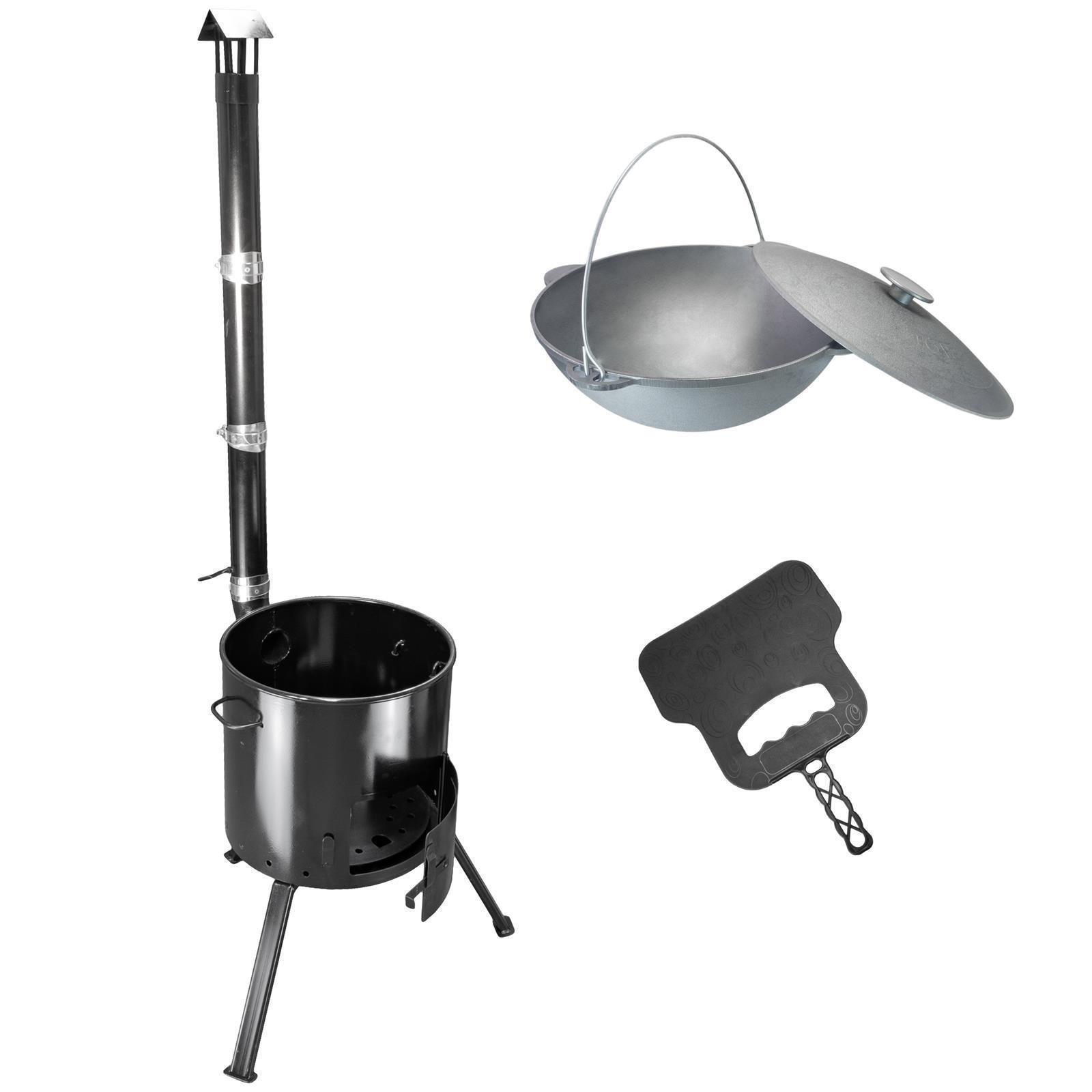 In Kombination mit einem Kazan oder Wok können Sie einen leckeren Gulasch, Plow oder Eintopf zubereiten. Desweiteren besteht die Möglichkeit ihn mit einem Grillrost auszustatten, damit Sie gemütliche Abende mit Bratwurst und Grillgemüse genießen können.