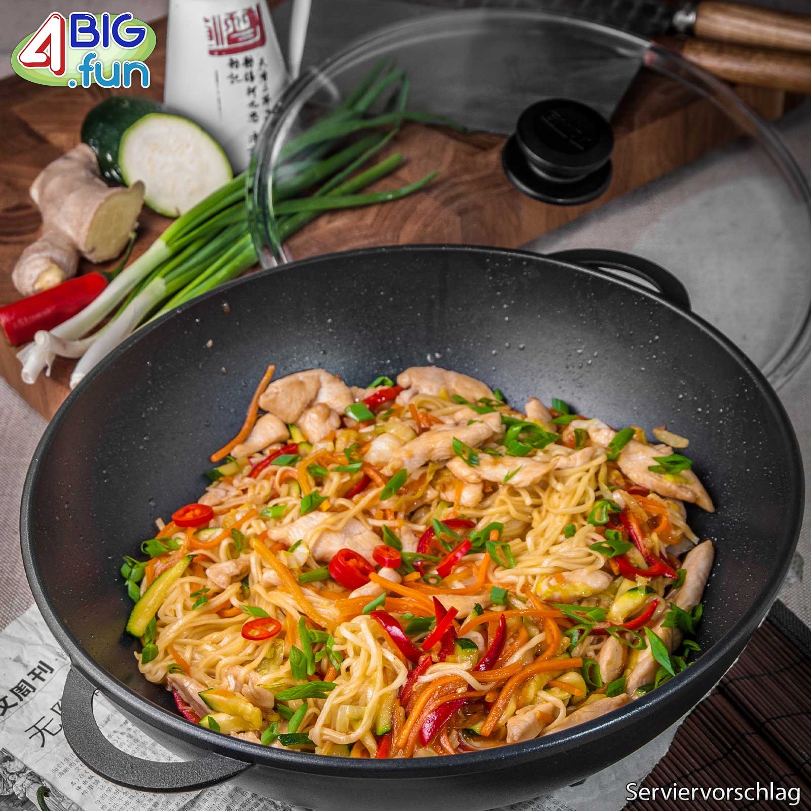 Suchen Sie nach einer neuen universellen Pfanne, die hohe Wärmeübertragung und Langlebigkeit hat. Dann ist ein Wok 26 cm aus Gusseisen mit Glasdeckel die beste Entscheidung. Fast kein Küchengerät bietet Ihnen mehr Möglichkeiten als der Wok. Sowohl mediterrane Paella oder Thai-Curry, als auch indonesisches Nasi-Goreng oder türkischer Pilav – entdecken Sie neue Kulturen und neue Geschmäcker mit unserer Wokpfanne aus Gusseisen. Auch die Gerichte mit der Stir-Fry-Methode werden im traditionellen Wok zubereitet.
