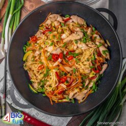 Gerichte aus der Wokpfanne sind nicht nbur an der Oberfläche knusprig, sondern auch innen schön saftig. Die Wok-Pfanne muss auf eine hohe Temperatur erhitzt werden, daher ist unbeschichtetes Gusseisen das beste Material für diese Art von Pfanne. Außerdem kann man den Wok auf allen gängigen Herdarten inklusive Induktion verwenden.