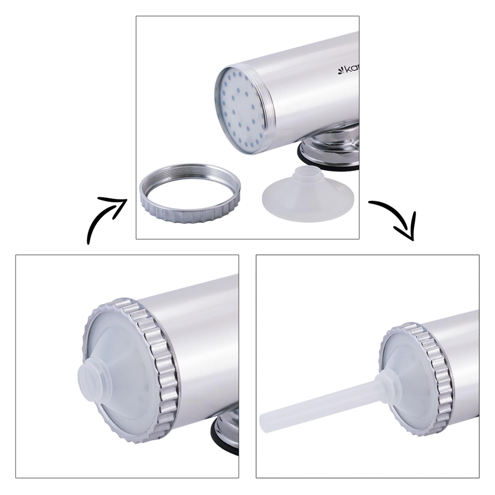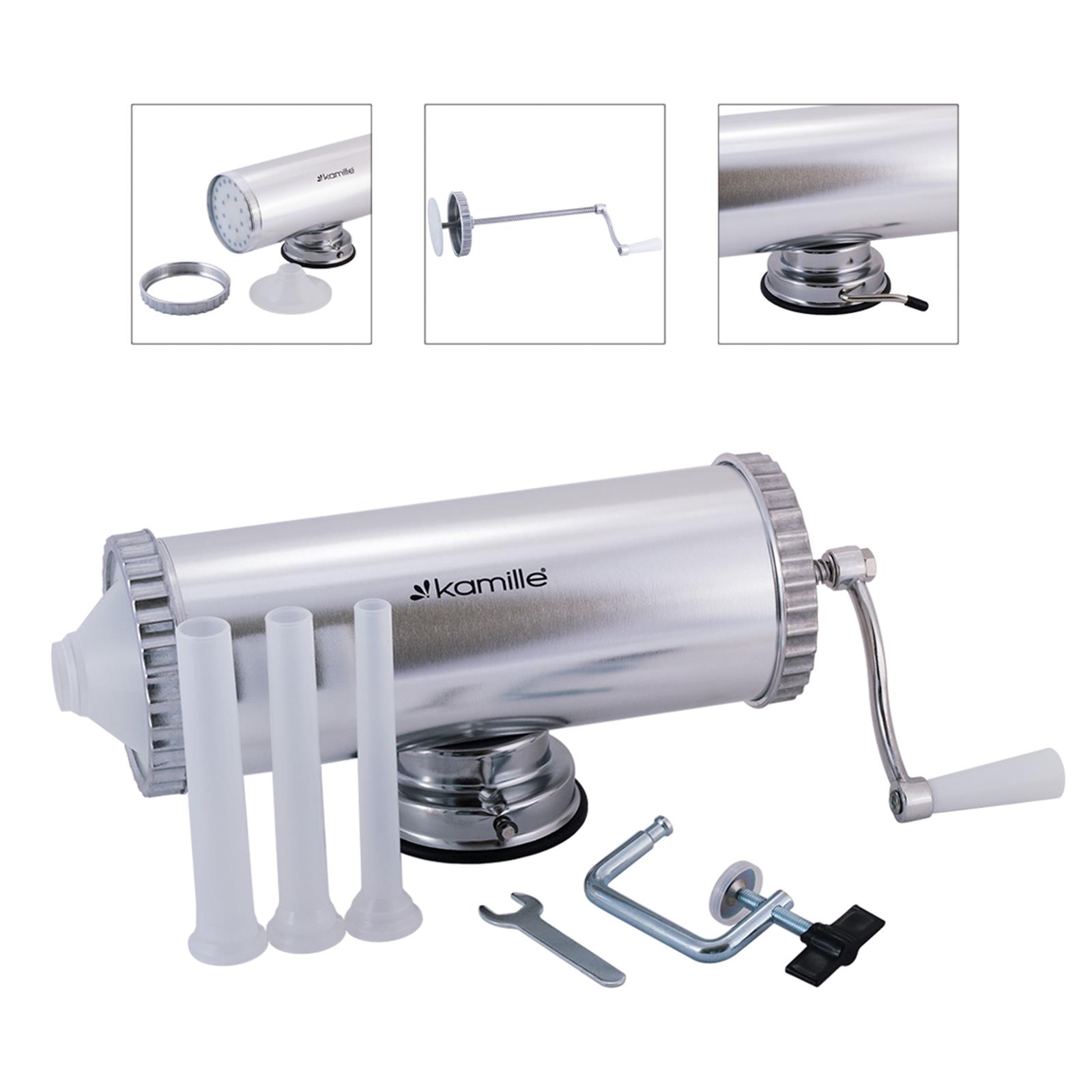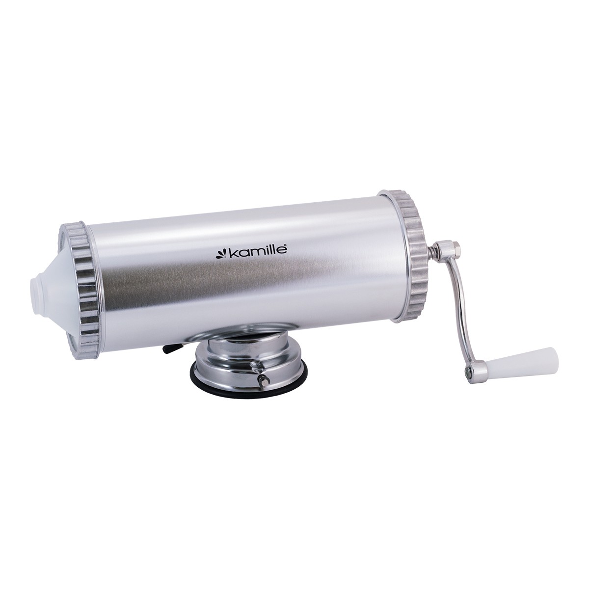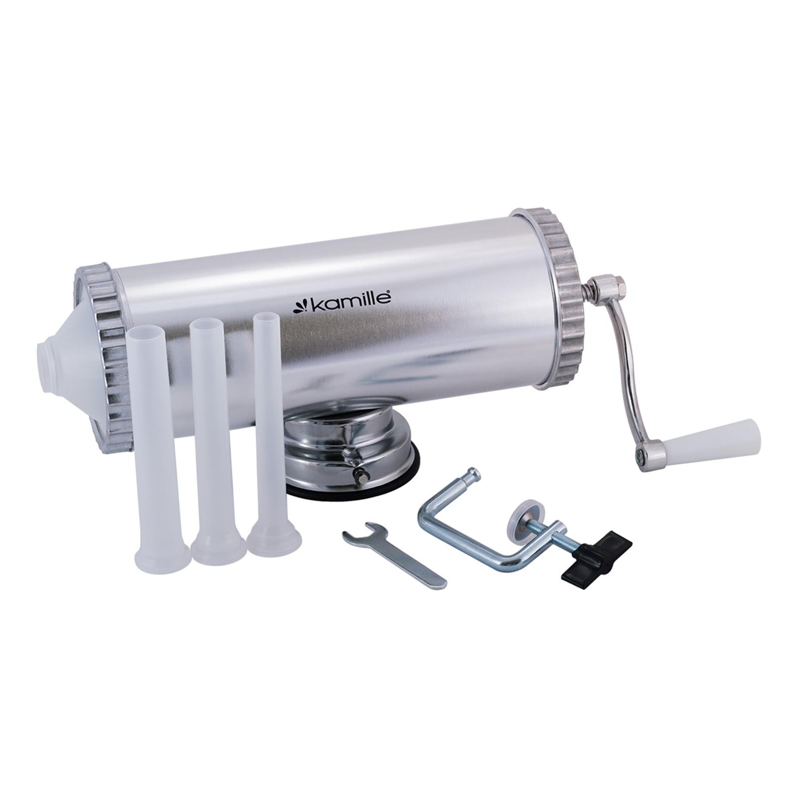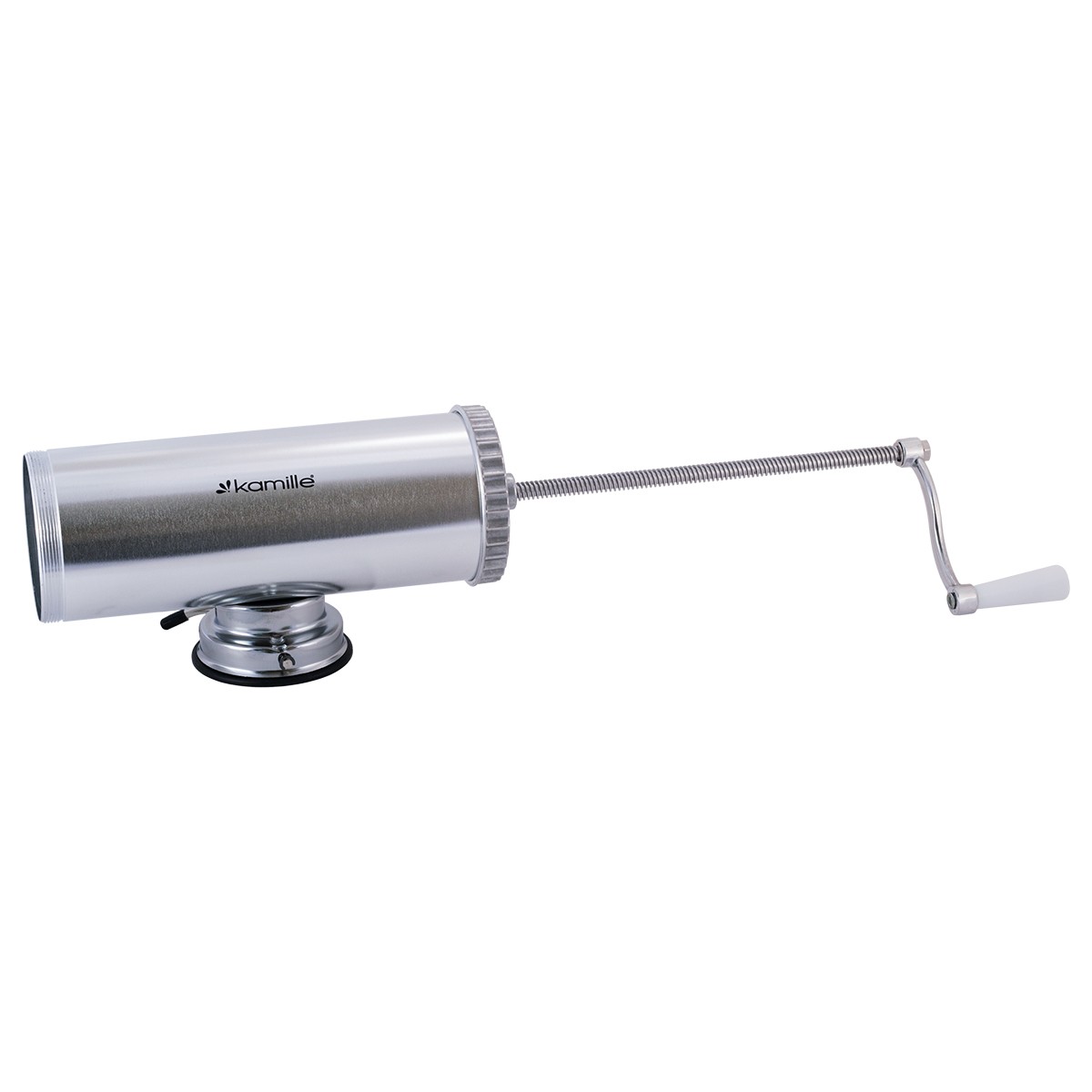 Zum Herstellen eigener Würstchen nach Ihrem Geschmack eignet sich diese Maschine hervorragend. Füllen Sie das Brät einfach in den Aluminium Kolben und pressen Sie die Masse durch die Düse. Durch die verschiedenen Düsengrößen, kann man seine Lieblingsgröße selber wählen.
